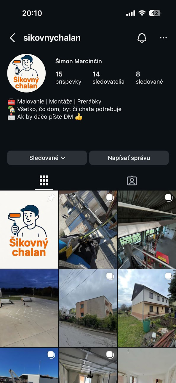 Na profile Šikovný chalan zdieľam fotky z práce, zákulisie projektov aj malé "pred a po" premeny. Nájdeš tam všetko od maľovania bytov až po opravy vo výškach – jednoducho všetko, čo dom, byt či chata potrebujú.