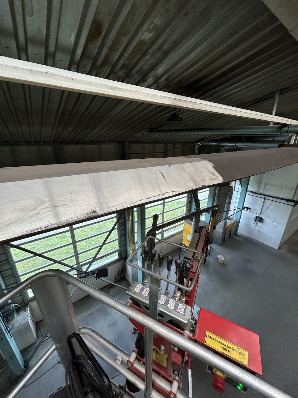 Rozsah: 900 m²Popis: Čistenie oceľových konštrukcií od prachu, oprava poškodeného náteru, práca vo výške.